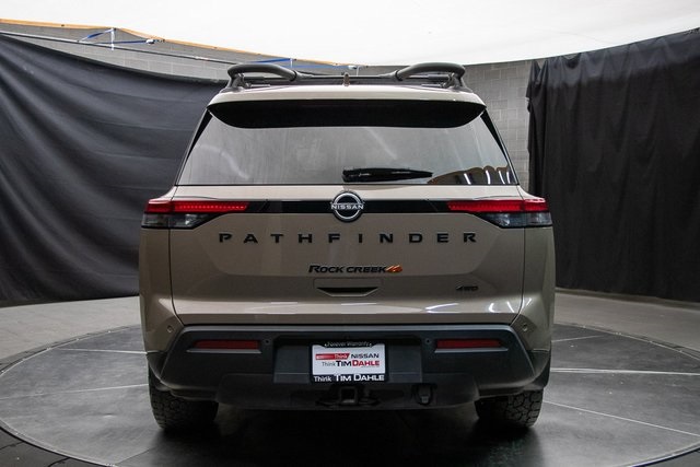 NOVEMBER TO REMEMBER WITH THESE UNBELIEVABLE DISCOUNTS! NO PAYMENTS UNTIL FEBRUARY. 200 PRE-OWNED VEHICLES IN STOCK. PRICE REQUIRES DEALER ARRANGED FINANCING. TIM DAHLE FOREVER WARRANTY. FREE OF CHARGE 100% LIFETIME POWERTRAIN WARRANTY. Tim Dahle vehicles with less than 60,000 miles, 6 years and newer, non-luxury or altered vehicles, come with a Lifetime Powertrain Warranty. There are NO dollar limitations to this warranty and it includes EVERYTHING powertrain including Turbos seals and gaskets. This warranty is valid in all fifty states. ALL At No Charge just for doing business with Tim Dahle Auto Group. Internet or advertised pricing not compatible with the deferred payment option. While we make every effort to ensure the data listed here is correct, there may be instances where some of the options or vehicle features may be listed incorrectly as we get data from multiple data sources. PLEASE MAKE SURE to confirm the details of this vehicle with the dealer to ensure its accuracy. Dealer cannot be held liable for data that is listed incorrectly. Not all vehicles qualify for the Forever Warranty. See Dealer for details. 2023 Nissan Pathfinder Rock Creek in Baja Storm, 4WD, 4-Wheel Disc Brakes, 6 Speakers, ABS brakes, Alloy wheels, Automatic temperature control, Brake assist, Driver vanity mirror, Electronic Stability Control, Four wheel independent suspension, Front dual zone A/C, Front fog lights, Front reading lights, Fully automatic headlights, Heated door mirrors, Heated Front Bucket Seats, Illuminated entry, Leatherette Seating Surfaces, NissanConnect featuring Apple CarPlay and Android Auto, Outside temperature display, Overhead console, Passenger door bin, Passenger vanity mirror, Power door mirrors, Power driver seat, Radio: AM/FM Audio System w/NissanConnect, Rear Parking Sensors, Rear reading lights, Rear window wiper, Security system, Speed control, Speed-sensing steering, Steering wheel mounted audio controls, Telescoping steering wheel, Traction control, Turn signal indicator mirrors. CARFAX One-Owner. Clean CARFAX. 2023 Nissan Pathfinder Rock Creek